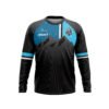 A diferencia de la espalda, el frente de nuestro jersey en el área del pecho y abdomen, cuentan con un textil liso, igualmente licrado, que evita el golpe directo del aire frio sobre estas zonas, evitando así, que el ciclista se exponga a corrientes de aire directo sobre el área de los pulmones, que pueden provocar el desarrollo de enfermedades respiratorias.